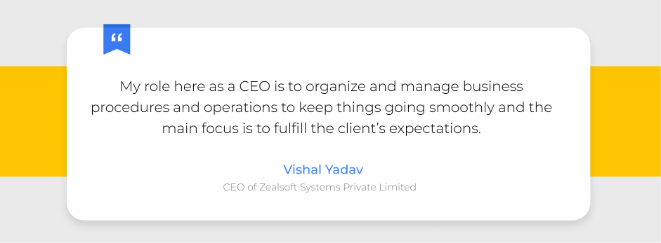 The experts at GoodFirms had a chance to sit down and converse with the CEO of Zealsoft Systems Private Limited - Mr. Vishal Yadav. During our conversation, we discuss diverse aspects of the company, including the company's mission and expanding prospects